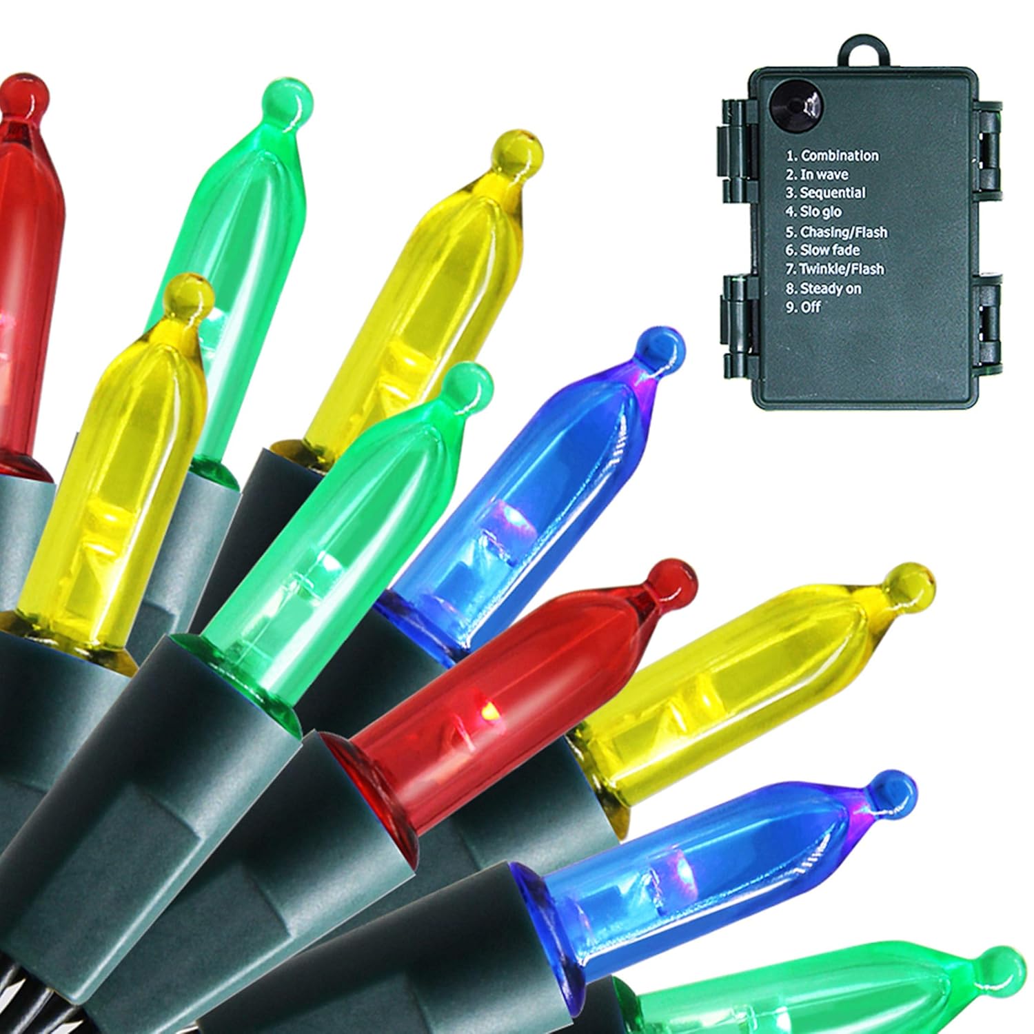 50 Battery Operated Christmas Lights - Twinkle Star 50 LED Battery Operated Christmas Lights 16 ft Mini String Lights Waterproof Tree Lights with 8 Lighting Modes Indoor Outdoor Patio Garden Party Wedding Christmas Decoration Warm White. 50 LED Multi Battery powered Christmas light string for holiday and special. 50 Super Bright Pure White Color LEDs Lights On 16 Ft Long Copper Ultra Thin Wire With 4 Inches Distance Between LED Bulbs And 12 Inches Clear Cable Between Wire And Battery Box. 50 light battery operated LED Christmas lights that run on 3 D batteries and have a built in auto on timer.